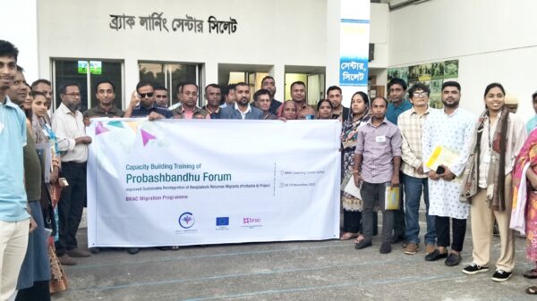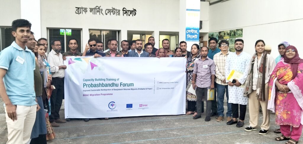 সিলেটের পীরের বাজারে ব্র্যাক BLC ট্রেনিং সেন্টারে ১৮ ও ১৯ নভেম্বর (মঙ্গলবার ও বুধবার) দুইদিনব্যাপী সারাদিনব্যাপী প্রশিক্ষণ কর্মশালা অনুষ্ঠিত হয়েছে। তিনটি জেলা নরসিংদী, সিলেট, ও সুনামগঞ্জ জেলা প্রবাস বন্ধু ফোরামের সদস্যদের নিয়ে ব্র্যাকের উদ্যোগে আয়োজিত এই প্রশিক্ষণের মূল লক্ষ্য ছিল সমাজের বিভিন্ন স্তরের মানুষকে নিরাপদ অভিবাসন, বৈধ বিদেশ যাত্রা, নেতৃত্ব বিকাশ এবং কমিউনিটি সচেতনতা বিষয়ে দক্ষ ও সজাগ করা।