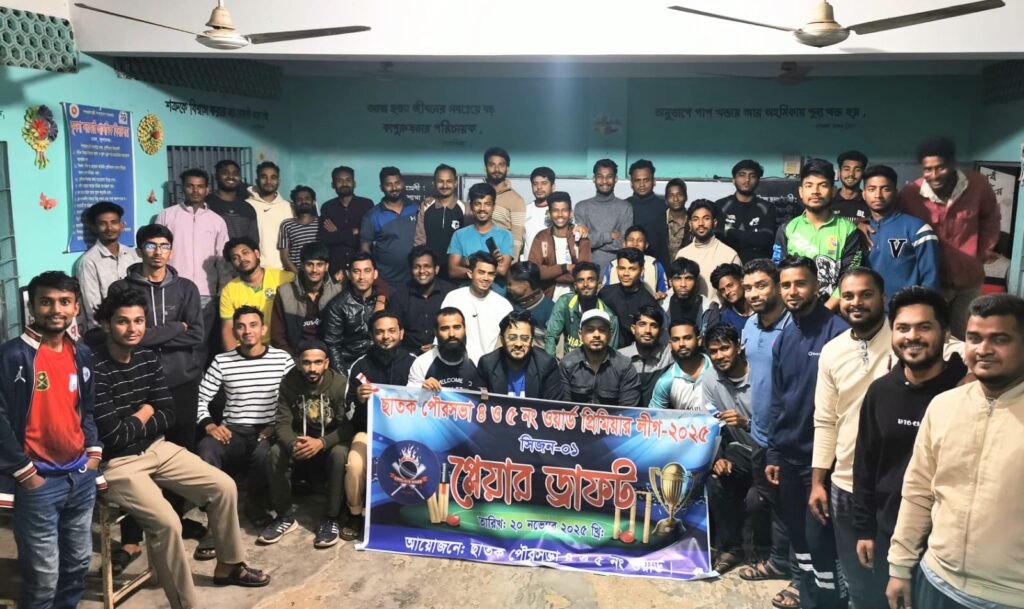 ছাতক পৌরসভার ৪ ও ৫ নং ওয়ার্ডের যুবসমাজের জন্য আয়োজিত “৪ ও ৫ নং ওয়ার্ড প্রিমিয়ার লীগ–২৫” এর প্রথম সিজনের প্লেয়ার ড্রাফট অনুষ্ঠান সফলভাবে সম্পন্ন হয়েছে।