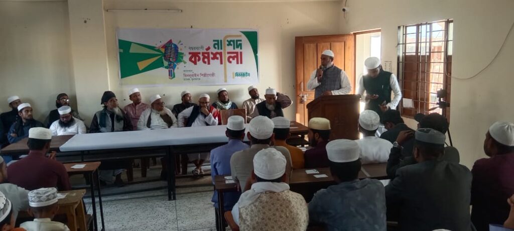 ২৮শে নভেম্বর শুক্রবার উপজেলার একটি হল রুমে আয়োজিত এ কর্মশালায় স্থানীয় শিল্পী, শিক্ষার্থী, তরুণ নাশিদশিল্পীসহ বিভিন্ন শ্রেণি-পেশার মানুষ অংশ নেন।