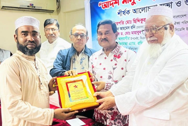 বাংলাদেশ প্রযন্ম সাংস্কৃতিক পরিষদ ও মানবাধিকার জোটের যৌথ উদ্যোগে শনিবার বিকেলে রাজধানী ঢাকার বিজয় নগরস্থ রেস্টুরেন্টের ভি আই পি হল রুমে অনুষ্ঠিত আদর্শ মামুষ গড়তে হলে নৈতিক শিক্ষার প্রয়োজন শীর্ষক আলোচনা সভায় প্রধান অতিথি হিসেবে বক্তব্য রাখেন সুপ্রীম কোর্টের বিচারপতি সিদ্দিকুর রহমান মিঞা। অনুষ্ঠান উদ্বোধন করেন বাংলাদেশ সাংবাদিক ঐক্য পরিষদের চেয়ারম্যান সাব্বির আহমেদ রনি। প্রধান আলোচক হিসাবে বক্তব্যে রাখেন প্রেসিডেন্সি ইউনিভর্সিটির সাবেক উপাচার্য প্রফেসর ড. মাহাবুব আলী। বিশেষ অতিথি হিসেবে বক্তব্য রাখেন বীর মুক্তিযোদ্ধা এডভোকেট রফিকুল ইসলাম মাসুম। বিশিষ্ট মানবাধিকার কর্মি মঞ্জুর হোসেন ইশা ও সাংবাদিক সাকির আমিনের যৌথ সঞ্চালনায় এবং বিশিষ্ট সাংস্কৃতিক ব্যক্তিত্ব ও লেখক রেজাবুদ্দৌলা চৌধুরীর সভাপতিত্বে বিশেষ অতিথি হিসেবে বক্তব্য রাখেন বিজনেস ডেভেলপমেন্টের চেয়ারম্যান আব্দুর রহমান আদিব,বাংলাদেশ মানবাধিকার বাস্তবায়ন ফাউন্ডেশন সিলেট জেলা শাখার অর্থ সম্পাদক ইব্রাহিম আলী। আরোও বক্তব্য রাখেন শিক্ষক সাইদুল আলম ডালিম, মানবাধিকার কর্মি খালেদুজ্জামান, আনোয়ার পারভেজ, বীর মুক্তিযোদ্ধা নূর আহমেদ, প্রফেসর ড. এম এ সামাদ,ড. মোহাম্মদ নিজাম উদ্দিন প্রমূখ।অনুষ্ঠান শেষে মানবাধিকার পেশায় বিশেষ অবদানের জন্য প্রধান অতিথি বিচারপতি সিদ্দিকুর রহমান মিঞার হাত থেকে স্টার সাইনিং এ্যাওয়ার্ড গ্রহন করেন বাংলাদেশ মানবাধিকার বাস্তবায়ন ফাউন্ডেশন সিলেট জেলা শাখার অর্থ সম্পাদক মোহাম্মদ ইব্রাহিম আলী।