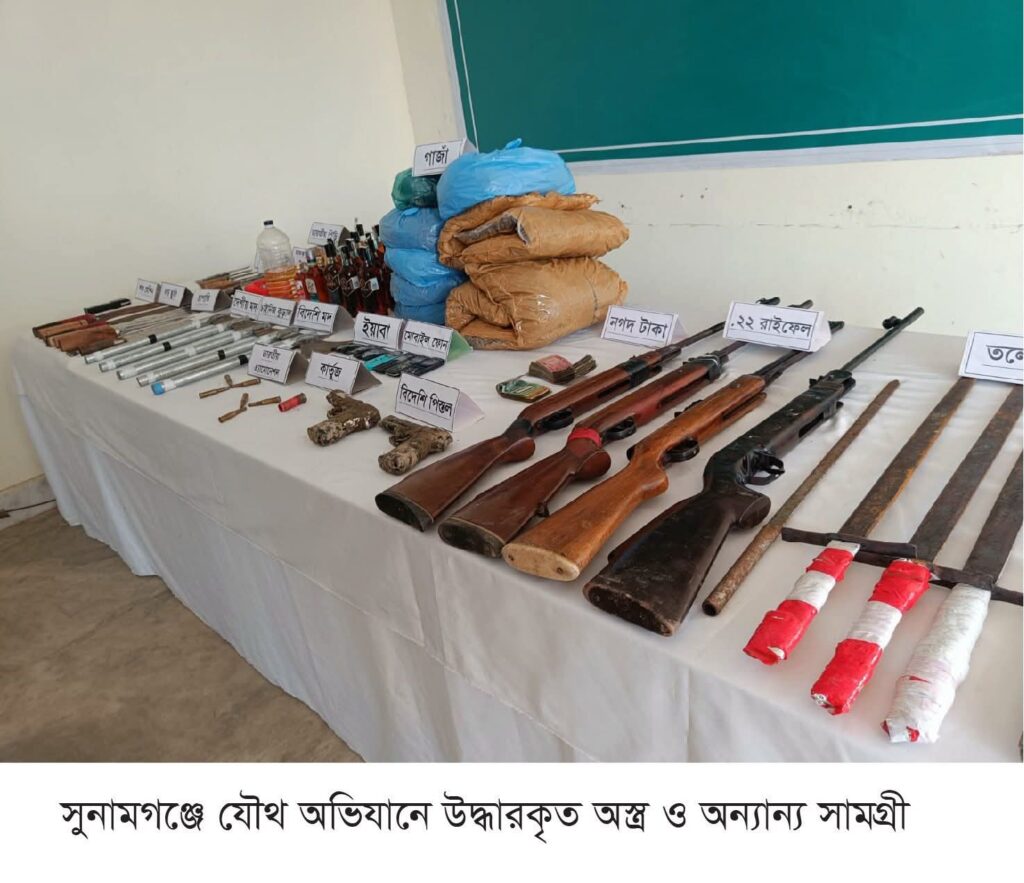 সুনির্দিষ্ট গোয়েন্দা তথ্যের ভিত্তিতে বাংলাদেশ সেনাবাহিনীর ১৭ পদাতিক ডিভিশনের অধীনস্থ ইউনিট গতকাল মধ্যরাত থেকে আজ সকাল পর্যন্ত সুনামগঞ্জ জেলার বিভিন্ন উপজেলায় সমন্বিত যৌথ অভিযান পরিচালনা করেছে।