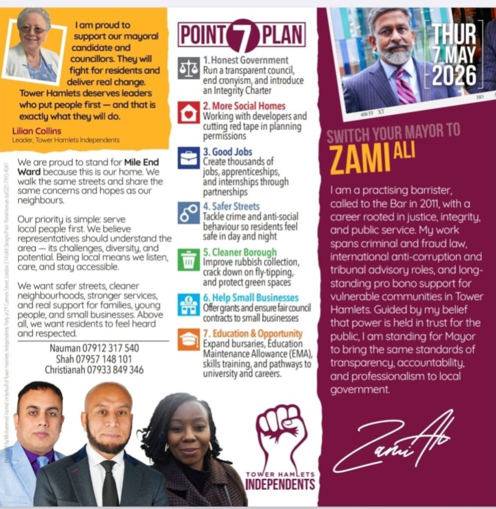আগামী ৭ই মে অনুষ্ঠিতব্য নির্বাচনে তিনি কাউন্সিলর পদে প্রতিদ্বন্দ্বিতা করছেন। নির্বাচনে জয়ী হলে এলাকার অবকাঠামোগত উন্নয়ন, শিক্ষা ও স্বাস্থ্যসেবার মানোন্নয়ন এবং প্রবাসী কমিউনিটির কল্যাণে কাজ করার অঙ্গীকার ব্যক্ত করেছেন তিনি।
