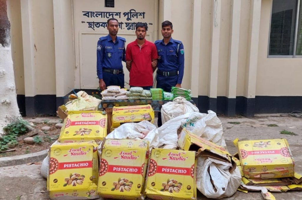 অন্যদিকে, মামলা নং-১৭(০৩)২৬ এর এজাহারভুক্ত আসামী মোঃ জুয়েল আহমদ (২৮) (সাবেক ইউপি সদস্য), পিতা- হুশিয়ার আলী, মাতা- নেওয়ারুন্নেছা, সাং- রামপুর, ৮নং ওয়ার্ড, ইউপি- কালারুকা, থানা- ছাতক, জেলা- সুনামগঞ্জকে গ্রেফতার করা হয়। তার হেফাজত থেকে ৯৬ কেজি পেস্তা বাদাম, ১০০ প্যাকেট (৫০ কেজি) AJNAIN মসলা, ৫০ কেজি গুয়ামৌরি প্যাকেট এবং ১০০০ পিস BETNOVATE ক্রীম উদ্ধার করা হয়েছে। এসব পণ্যের আনুমানিক মূল্য ৯ লাখ ৪০ হাজার টাকা। এসময় একটি ডিআই পিকআপ গাড়ীও জব্দ করা হয়।