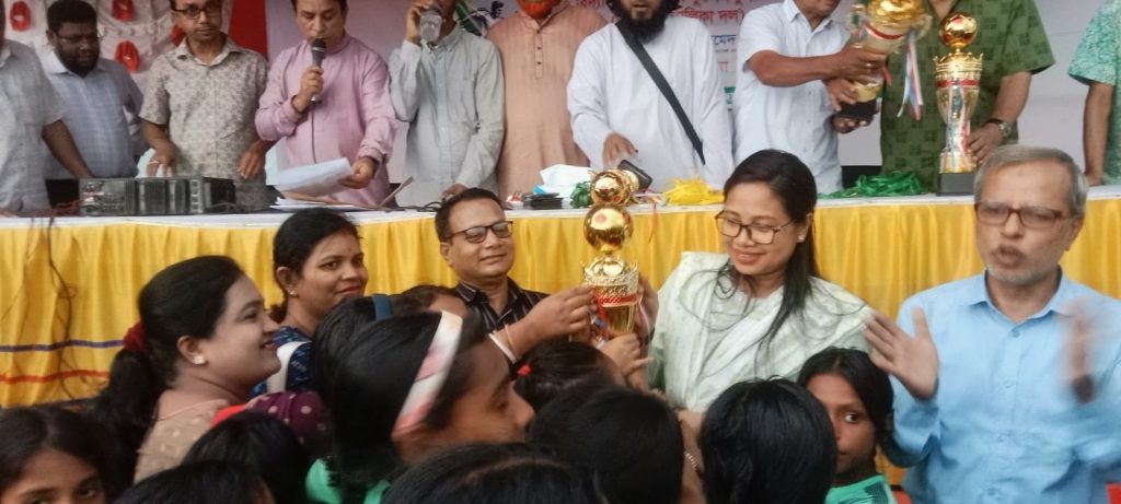 সুনামগঞ্জের ছাতক উপজেলা শিক্ষা অফিসের উদ্যোগ প্রাথমিক বিদ্যালয় গোল্ডকাপ ফুটবল টুর্নামেন্ট উপজেলা পর্যায়ে বালক ও বালিকা দল অনুষ্ঠিত হয়েছে। রোববার বিকেলে শহরের উপজেলা মিনি স্টেডিয়াম মন্টু বাবুর মাঠে অনুষ্ঠিত খেলায় অংশ গ্রহন করে পৌর শহরের বৌলা সরকারি প্রাথমিক বিদ্যালয় ও উপজেলার সিংচাপইড় ইউনিয়নের খামার গাও সরকারি প্রাথমিক বিদ্যালয়।খেলায় খামার গাওঁ সরকারি প্রাথমিক বিদ্যালয়কে ২ গোলে হারিয়ে বৌলা সরকারি প্রাথমিক বিদ্যালয় বিজয় অর্জন করে। উপজেলা শিক্ষা কর্মকর্তা শাহজাহান আহমদ চৌধুরীর সভাপতিত্বে অনুষ্ঠিত পুরুষ্কার বিতরনী অনুষ্ঠানে প্রধান অতিথি হিসেবে বক্তব্য রাখেন উপজেলা নির্বাহী কর্মকর্তা ডিপ্লোমেসি চাকমা। এসময় সভায় উপস্থিত ছিলেন উপজেলা সহকারী শিক্ষা কর্মকর্তা সুভাষ চন্দ্র চক্রবর্তী,বৌলা সরকারি প্রাথমিক বিদ্যালয়ের প্রধান শিক্ষক দুলন তরফদার, জালাল পুর সরকারি প্রাথমিক বিদ্যালয়ের সহকারি শিক্ষক সাইদুল আলম ডালিম, কহল্লা সরকারি প্রাথমিক বিদ্যালয়ের সহকারি শিক্ষক পংকজ দত্ত, বাগবাড়ি মডেল সরকারি প্রাথমিক বিদ্যালয়ের সহকারি শিক্ষক ইমাদ উদ্দিন মানিক, শিক্ষক হেলালুল ইসলাম, মাহবুবুল হক স্বপন,চন্দন চন্দ্র পাল প্রমূখ। খেলা শেষে বিজয়ী দের হাতে পুরুষ্কার তুলে দেন। উপজেলা নির্বাহী কর্মকর্তা ডিপ্লোমেসি চাকমা। প্রধান অতিথির বক্তব্যে উপজেলা নির্বাহী কর্মকর্তা ডিপ্লোমেসি চাকমা বলেন দেশকে এগিয়ে নিতে হলে খেলা ধুলার মাধ্যমে শিশু কিশোর দের উৎসাহ উদ্দীপনার মধ্য রাখতে হবে। জ্ঞান – বিজ্ঞান চর্চার করে প্রতিভা বিকাশ ঘটাতে হবে।