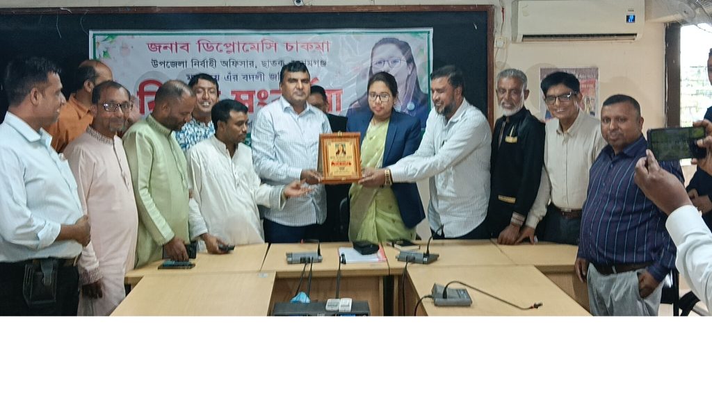 সুনামগঞ্জের ছাতক উপজেলায় ইউনিয়ন পরিষদ চেয়ারম্যানদের ভালোবাসায় সিক্ত হলেন উপজেলা নির্বাহী কর্মকর্তা (ইউএনও) ডিপ্লোম্যাসি চাকমা।