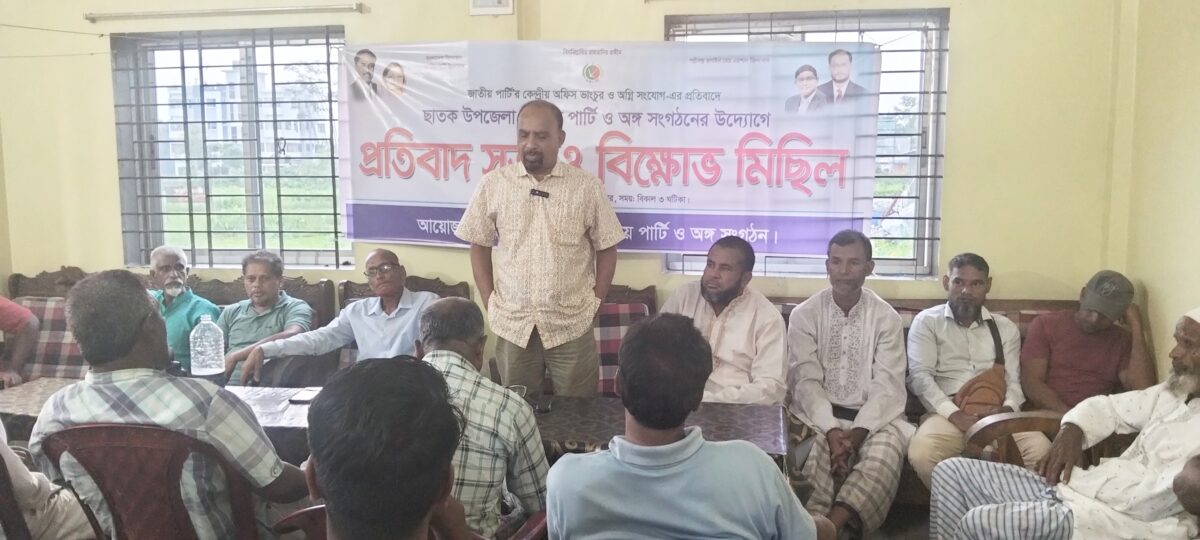সুনামগঞ্জের ছাতক উপজেলায় জাতীয় পার্টির উদ্যোগে এক প্রতিবাদ সভা ও বিক্ষোভ মিছিল হয়েছে।