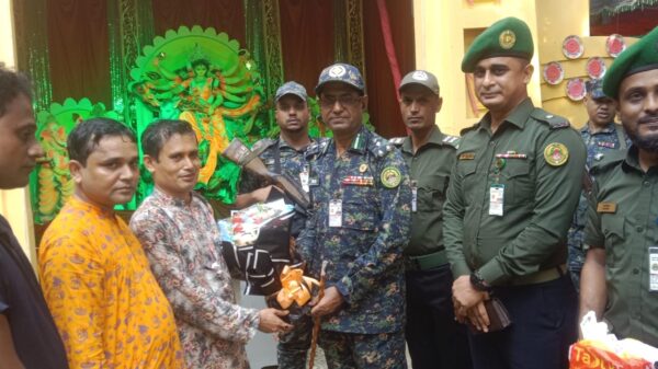 সুনামগঞ্জের ছাতক পৌর শহরের কয়েকটি পূজাঁ মন্ডপ পরিদর্শন করলেন আনসার বাহিনীর সিলেট রেঞ্জের উপ- মহাপরিচালক মোঃ জিয়াউল হাসান।তিনি সোমবার বিকেলে শহরের রেলওয়ে কলোনিস্থ মহামায়া পূজাঁ মন্ডপ পরিদর্শন কালে মতবিনিময় করেন পূজাঁ উদযাপন কমিটির সভাপতি তপন পাল ও সাধারণ সম্পাদক জন্টুদাসের সাথে। শিববাড়ি পূজাঁ মন্ডপ পরিদর্শন কালে মতবিনিময় করেন পূজাঁ উদযাপন কমিটির সভাপতি মনোরঞ্জন দেবনাথ ও সাধারণ সম্পাদক সুব্রত চন্দের সাথে ও কালিবাড়ি পূজাঁ মন্ডপ পরিদর্শন কালে মতবিনিময় করেন পূজাঁ উদযাপন কমিটির সভাপতি অরুণ দাস ও সাধারণ সম্পাদক অমিতাভ দাস অমিত এবং অবসর প্রাপ্ত প্রধান শিক্ষক নিত্য রঞ্জন দাস নিতাইয়ের সাথে। পূজাঁ মন্ডপ গুলো পরিদর্শন কালে উপ- মহাপরিচালক মোঃ জিয়াউল হাসানের সাথে ছিলেন সুনামগঞ্জ জেলা কমান্ড্যান্ট রুবায়েত বিন সালাম এবং আরও উপস্থিত ছিলেন বয়সে তরুণ উদ্বিপ্ত যুবক উপজেলা আনসার ভিডিপি কর্মকর্তা মোঃ আব্দুল কাদির। উপ-মহাপরিচালক জিয়াউল হাসান পূজাঁ মন্ডপ গুলো পরিদর্শন কালে মন্ডপ কতৃপক্ষের কাছে জান্তে চান কোন ধরনের সমস্যা বা কোন অসুবিধা আছে কিনা এবং আইন শৃঙ্খলা ভঙ্গের আশংকা রয়েছে কিনা।এসময় সকলেই বলেন আইন শৃঙ্খলা ভঙ্গের কোন আশংকা নেই। ছাতকে উৎসব মোখর পরিবেশে পূজাঁ উদযাপন হবে। জিয়াউল হাসান বলেন সাম্প্রতিক সম্প্রীতি বজায় রেখে ধর্মীয় ভাবগাম্ভীর্যের মধ্য দিয়ে উৎসব মোখর পরিবেশে পূজাঁ উদযাপন হোক এটাই আমাদের চাওয়া।